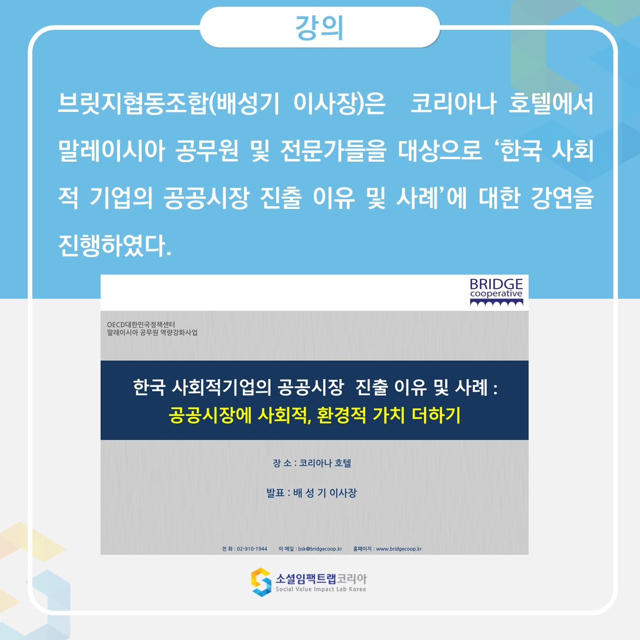 소셜임팩트랩코리아 대표자명 : 배성기 사업자등록번호 : 209-11-32634