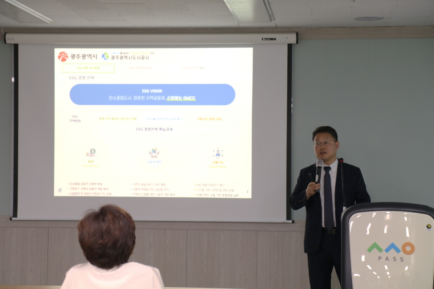 강의에서는 각 지자체 및 공공기관의 실제 ESG 혁신사례도 함께 소개되었다. 배성기 소장은 지역 내 사회적경제와 환경 문제 해결에 실질적으로 기여하기 위해서는 ESG와 사회적 가치, SDGs의 통합적 접근이 필요하다고 강조했다. 지자체 혁신사례로 광주광역시의 ESG 경영 지원정책과 추진 사례, 주요 성과 등을 살펴보기도 했다. 또, 광주광역시 산하 공기업 중에서 SROI 임팩트평가를 실행하고 있음을 언급하며 공공기관의 공적 역할에 대한 임팩트 평가에 대한 시사점을 알렸다.